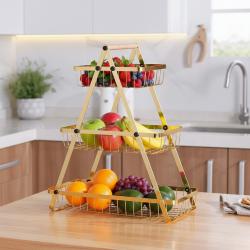 Триетажна метална поставка за плодове Cheffinger златист дизайн, мак