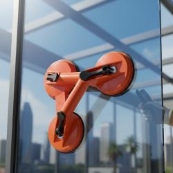 Тип: троен вакуумен държач; Предназначение: пренасяне и монтаж на автостъкла, листово стъкло и метал; Материал / корпус: PVC пластмаса; Диаметър на вакуумните лапи: 3 × 118 мм; Товароносимост: до 120 кг; Захващане: вакуумна фиксация с механични лостове; Допълнителни функции: стабилен захват върху гладки и плътни повърхности.