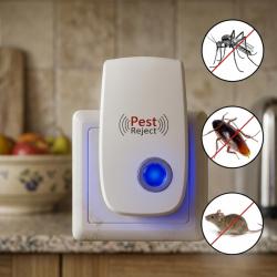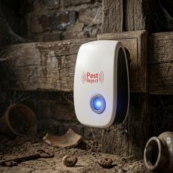 Технически характеристики на Ултразвуков репелент Pest Reject – Ефективна защита от гризачи и насекоми без химикали Технически данни и функционалности: Технология: ултразвуково излъчване с променлив честотен спектър за максимална ефективност срещу различни видове вредители. Захранване: директно от стандартен електрически контакт (220V-240V в зависимост от регионални спецификации). Индикатор: син LED бутон за работа/статус. Покритие: ефективно за помещения с различна квадратура; оптимален резултат при редовно използване и позициониране в открити пространства. Без движение на части и без поддръжка — надеждна електронна конструкция с ниска консумация на енергия. Без шум към човешкото ухо — sleep friendly и подходящ за спални помещения. Размери: 8,5 х 5,7 х 2,7см.
