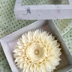 Луксозен декоративен сапун ‘Хризантема’, ръчно изваян с нож. 100% авторска карвинг техника без калъпи и молдове. Уникален флорален дизайн с невероятна детайлност и фин аромат. Единствен по рода си подарък за специални моменти. Ръчно гравиран с внимание към детайла, изработен от сапунена база с натурални масла и аромати, сапунът е идеален подарък за любимите ви при различни поводи. Открийте съвършенството на детайла с нашия декоративен карвинг сапун Хризантема. Този модел е истинско предизвикателство за сетивата, при което всяко едно от десетките малки листенца е изрязано изцяло на ръка с нож. В Atelier ABCarving не използваме молдове за нашите цветя – всяка хризантема се ражда под острието на ножа, което гарантира, че притежавате уникат. Изработен от първокласна глицеринова база, сапунът впечатлява със своята симетрия и ефирност. Нежният му аромат и изтънчена визия го правят перфектен за декорация на дома или като специален подарък, който изразява признателност и внимание към детайла. Хризантемата е символ на дълголетие и радост, което я прави идеално допълнение към вашите празнични поводи или интериорни решения. Характеристики: диаметър: 10,5 см височина: 4 см / тегло около 250 – 300 гр цвят: бял, розов, жълт, червен, син, лилав, зелен, тюркоаз аромат: люляк, роза, магнолия, мед и мляко За повече уникални сапуни и свещи, моля посетете: https: //atelierabcarving. com/