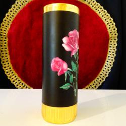 Порцеланова ваза Бавария, ваза баварски порцелан, ръчно рисувана с красива роза на черен фон и блестящо чисто злато 24 карата. Вазата е маркирана с два печата – за производител Plankenhammer Floss Bavaria и за злато – 24k Gold с кралска корона. Датира от 1930 г. Перфектна. Височина 15 см., диаметър 5 см.