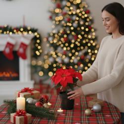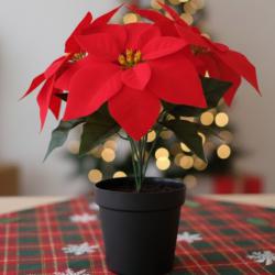Ако истинските коледни цветя ти омръзват с увяхването и грижите, тази изкуствена коледна звезда решава проблема напълно. Тя запазва формата и ярките си цветове през целия сезон – без поливане, без капещи листа и без поддръжка. С височина около 35 см е идеална за рафт, бюро, витрина или коледна подредба у дома и офиса. Изработена е от пластмаса и текстил, което ѝ дава реалистичен вид, а теглото от около 0,36 кг осигурява стабилност на всяка повърхност. Червените листа и зелените стъбла създават празнично настроение от първия момент.