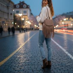 Материал: висококачествен еко велур Затваряне: основен цип + капак с магнитен клипс Вътрешни джобове: 1 с цип + 1 отворен Външен джоб: 1 заден с цип Презрамки: регулируеми Дръжка: да Подплата: текстил Размери: Височина: 27 см Дъно – дължина: 29 см Дъно – ширина: 13 см Цветове в наличност: Черен, Тъмносин, Тъмнозелен, Кафяв, Светлокафяв, Бордо, Бежово-кафяв