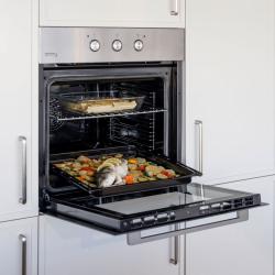 Модел: Taurus HM669IXM – вградима електрическа фурна; Капацитет: 69 л; Мощност: 2300 W обща; Температура: регулируема до 270°C; Таймер: механичен, до 100 минути; Функции (6): традиционно готвене, традиционна конвекционна фурна, грил, супергрил, готвене с подово отопление и размразяване; Управление: 3 прибиращи се метални копчета (функции / таймер / температура), 2 индикаторни лампи; Вътрешност: странични метални водачи, 6 позиции; Врата: двойно остъкление, лесно сваляема; Материали: инокс фронт, черно закалено стъкло, метална дръжка; Енергийна ефективност: Клас A; Размери: Ш 55 × В 57 × Д 45 см (Д 50см със стъпало); Захранване: 220–240 V; захранващ кабел в комплекта; Монтаж: за стандартен 50см шкаф за вграждане; Варианти: Нова/ С дефект; Дефект: Вдлъбната при транспорт - не пречи на работата на уреда; Гаранция: 12 месеца.