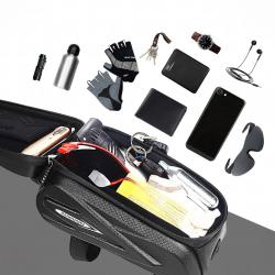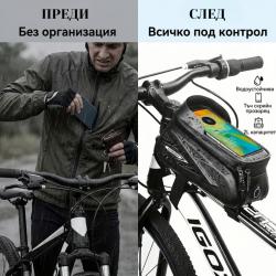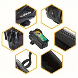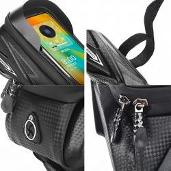 Технически характеристики на Водоустойчива чанта с тъчскрийн калъф за телефон до 7.2” – стабилен монтаж, 2L капацитет и максимално удобство при каране Размери: 22 x 14 x 11 см Капацитет: 2 L Съвместимост: телефони до 7.2” (макс. 18,5 x 8,5 см) Материали: EVA, PU кожа, водоустойчив найлон Тегло: 220 г Монтаж: система с три велкро ленти за стабилна фиксация Защита: плътно закопчаване с цип, твърда конструкция Допълнителни функции: прозрачен тъчскрийн джоб, изход за кабел, светлоотразителни елементи
