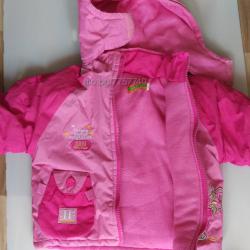 Якето с качулка + гащеризонът изолирани - топли. Състоянието е много добро. За момиченце, рост до 98 см. Чисто е, готово за употреба. Забележка: вижте последните две снимки, 5 мм леко разкъсване на гърбата на якето, която не пречи на употреба, или можете да я поправите с творческа идея. Доставка Спиди, Еконт или лично.