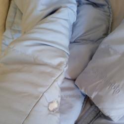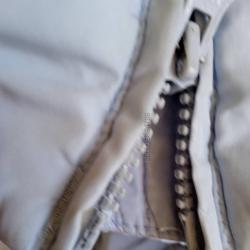 Изпрано е, чисто е, добре запазено. Малки не са забележителни петна отпред на якето и друго - вижте отзад на десния ръкав реставрирано с малка лепенка (отпред на якето няма да видиш). Обиколката на гърдите (подмишници) до 108 см, на ханша до 112 см. Дължината по гърба 75 см. Якето няма избеляло, цвятът е чист светло син. Доставка Спиди, Еконт или лично.