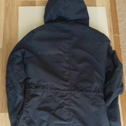 Якето ватирано е, топло е, изпрано, чисто е и готово за употреба. Размер М. Гръдната обиколка до 96 см, обиколката на ханша до 100 см, дължината по гърба 82 см, ръкавите доста дълги. Цвятът е син. Всички забележки на снимките: на ръкавите има леки петната от боя. Доставка Спиди или лично.