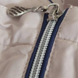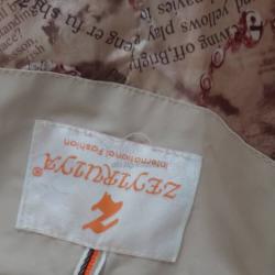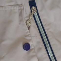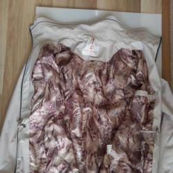 Почти ново е. Състоянието е здраво, много добро е, ципове са наред. Гръдната обиколка до 112, бедрата до 106 см, дължината по гърба 75 см.