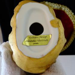 Стара японска порцеланова статуетка, фигура Ангел, който свири на музикалния инструмент лира/арфа, позлатена с матово злато 24 карата. Има запазен златен етикет Exclusiv – Design Noritake Vertrieb Japan. Перфектна. Височина 12.5 см., диаметър 9 см., тегло 140 гр.