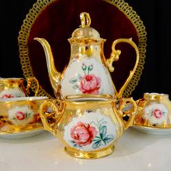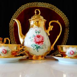 Захарница баварски порцелан, чисто злато, роза, барок.
